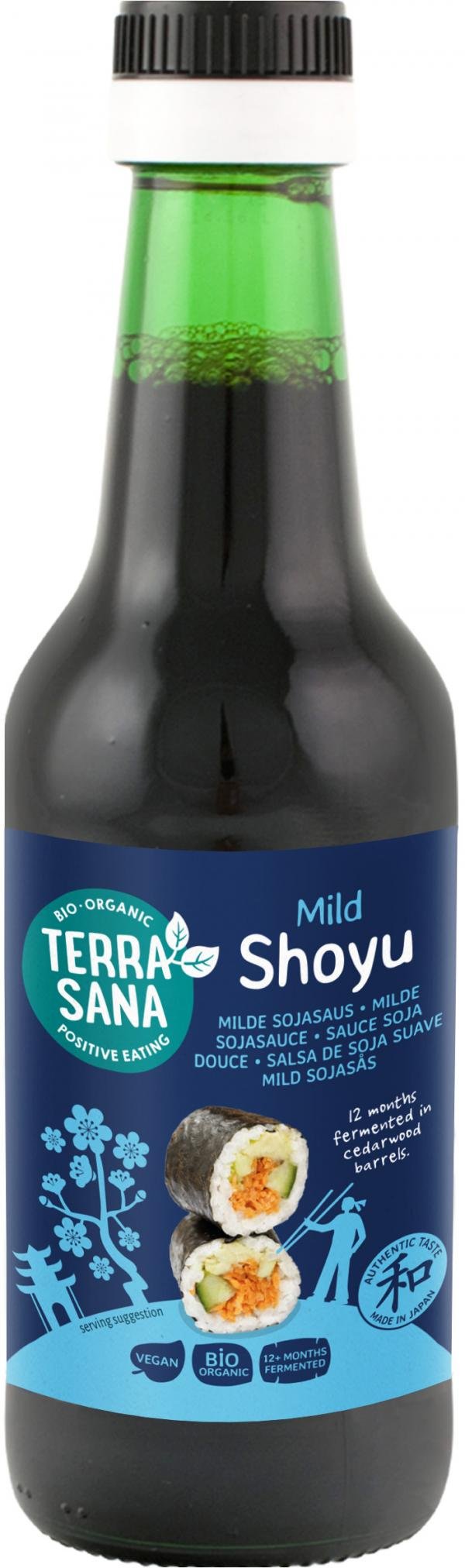 Shoyu ist eine milde japanische Sojasauce, die aus Sojabohnen, Weizen und Koji (einem einzigartigem japanischen Edel-Schimmelpilz) hergestellt wird. Unsere Shoyu wird auf besondere, traditionelle Art von Japanern gebraut, die schon seit Generationen Shoyu produzieren. Shoyu fermentiert mindestens 18 Monate lang, und das schmeckt man! Herrlich in (Miso-)Suppen, zu (Soba- und Udon-)Nudeln, Pfannengerührtem oder als Dip (zu Sushi). Auch erhältlich in 125ml, 500ml und 1l.