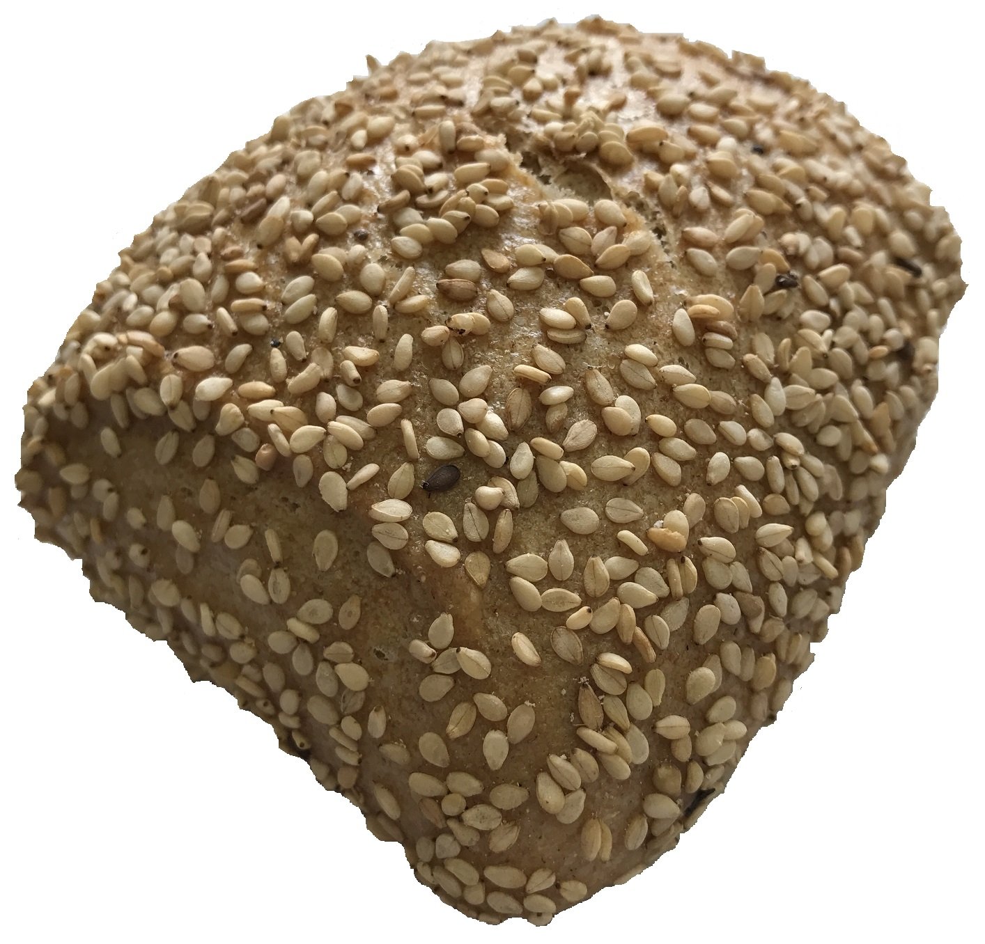 Dinkelauszugsmehl, Dinkelvollkornmehl, Hefe, GR Biobackmittel (Zucker, Gerstenmalzmehl, Gerstenmalzextraktpulver, Lupinenmehl, Acerola-Extrakt), pflanzl. Fette, Meersalz, Rohrohrzucker, bestreut mit Roggenvollkornmehl, Bestreuung: Sesam