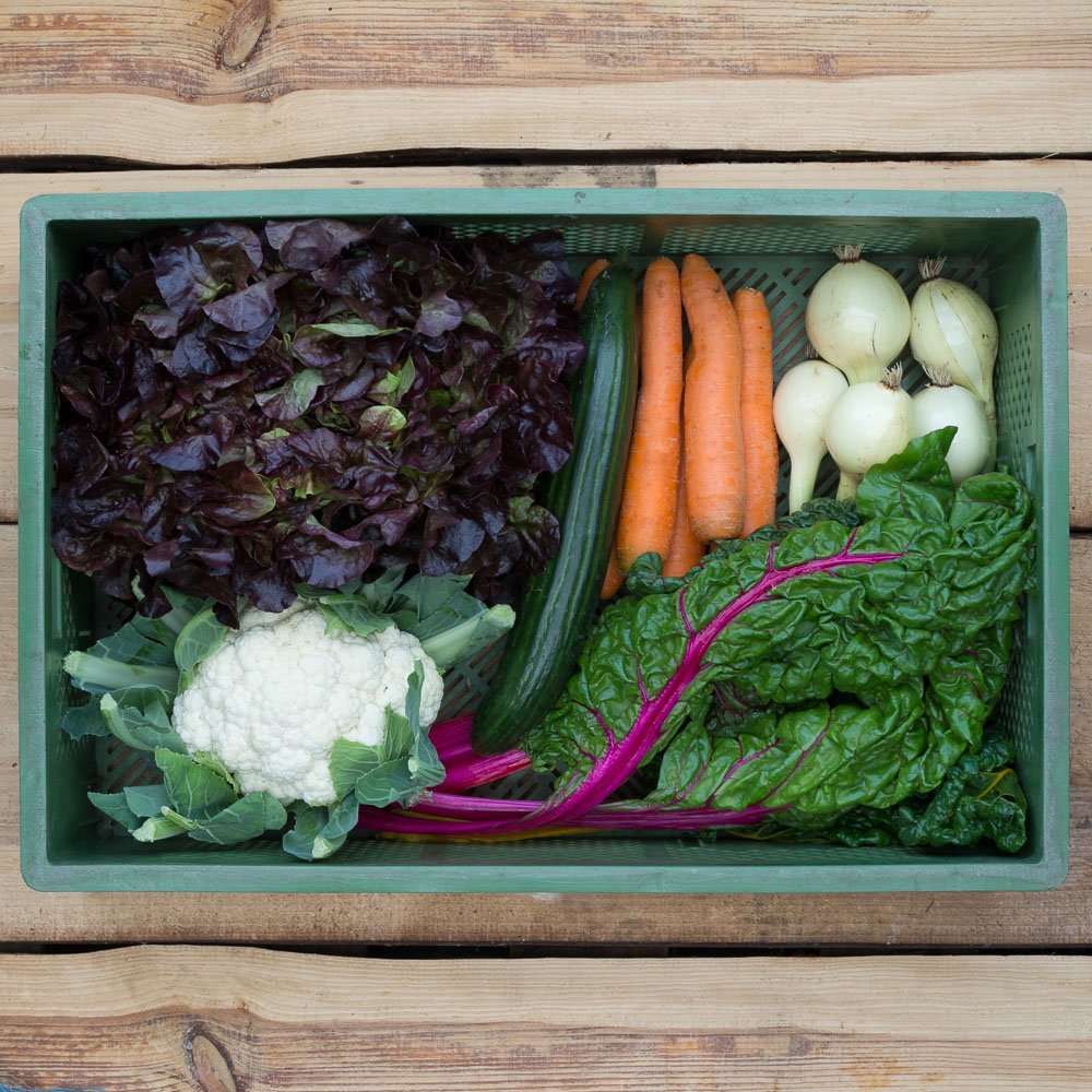 Immer enthalten: Salat und Möhren sowie zwei bis vier weitere Sorten regionales oder mediterranes Gemüse. Gelegentlich auch Gartenkräuter.